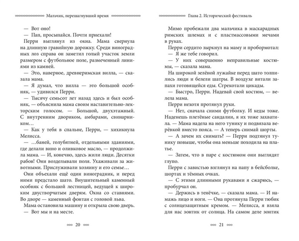 Его ждут дома в XXI веке… Но он должен задержаться в Древнем Риме! Двенадцатилетний Перри приехал вместе с семьей на исторический фестиваль, но стоило сделать шаг на руины виллы времен Южной Галлии — и его перенесло в IV век Древнего Рима! Все вокруг ходили в тогах и разговаривали на латыни… Как быть? Перри представился Перегринием и стал вживаться в роль раба. Познакомившись с Валентией, дочкой хозяина виллы, мальчик задумался: почему имя ровесницы кажется ему знакомым? Перри нужно решить: утолить любопытство, но задержаться в Древнем Риме, или скорее вернуться домой? Захватывающая история путешествия во времени станет отличным подарком для детей 11—13 лет, которые увлекаются историей древних цивилизаций.