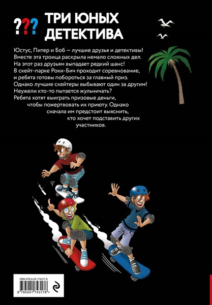 Увлекательная история о трех друзьях-детективах и их невероятных приключениях! Юстус, Питер и Боб — лучшие друзья и детективы! Вместе эта троица раскрыла немало сложных дел. На этот раз друзьям выпадает редкий шанс! В скейт-парке Роки-Бич проходит соревнование, и ребята готовы побороться за главный приз. Однако лучшие скейтеры выбывают один за другим! Неужели кто-то пытается жульничать? Ребята попытаются выиграть призовые деньги, чтобы пожертвовать их приюту. Однако сначала им предстоит выяснить, кто хочет подставить других участников.