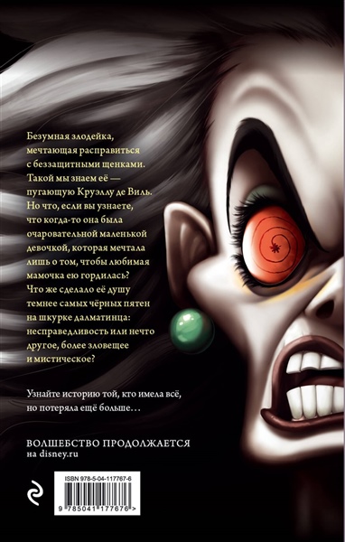 Когда-то давным-давно даже такая страшная женщина, как Круэлла де Виль была ребёнком. Девочкой, которая ни в чём не знала отказа и изо всех сил старалась быть настоящей леди, блистательной и укутанной в меха, – такой, как её мама. Мама, которая, безусловно, любила её – ведь она постоянно дарила ей подарки… Был у Круэллы и любимый отец, и дорогая лучшая подруга Анита, много слуг и красивый дом. И что же теперь? Трудно найти кого-то бессердечнее и безумнее Круэллы, запертой в Хелл-холле. Что привело её сюда? Чёрствое сердце, чья-то злая воля или же… проклятие?