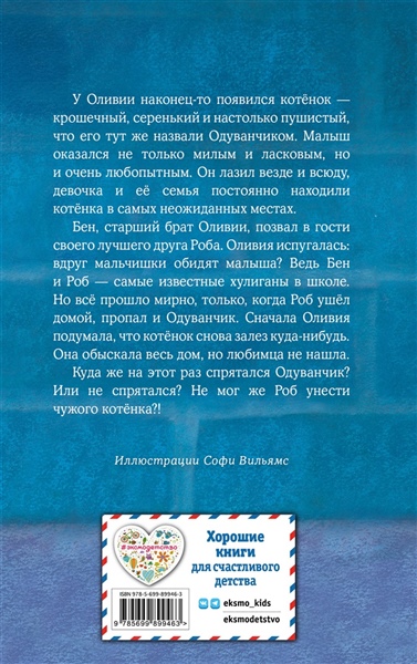 У Оливии наконец-то появился котенок — крошечный, серенький и настолько пушистый, что его тут же назвали Одуванчиком. Малыш оказался не только милым и ласковым, но и очень любопытным. Он лазил везде и всюду, девочка и ее семья постоянно находили котенка в самых неожиданных местах.
