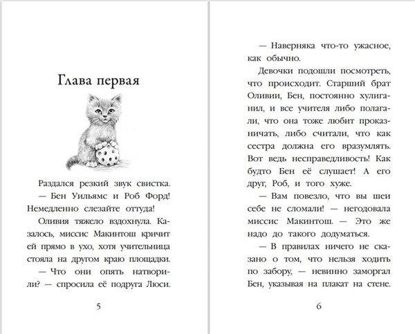 Бен, старший брат Оливии, позвал в гости своего лучшего друга Роба. Оливия испугалась, вдруг мальчишки обидят малыша? Ведь Бен и Роб — самые известные хулиганы в школе. Но все прошло мирно, только, когда Роб ушел домой, пропал и Одуванчик. Сначала Оливия подумала, что котенок снова залез куда-нибудь. Она обыскала весь дом, но любимца не нашла.