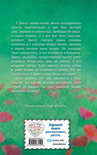 У Джесс, щенка колли, жизнь складывалась просто замечательно: у нее был уютный дом, вкусная и сытная еда, любящая ее семья. А самое главное у нее был Уилл, мальчик, которого Джесс считала своим главным хозяином, и с которым можно бегать, прыгать и играть сколько душе угодно. Но однажды Уилл сломал ногу и его положили в больницу. Джесс оказалась предоставлена самой себе: родители Уилла весь день на работе, а его младшая сестра Хлоя ужасно боится собак и даже близко не подходит к щенку. Кто же позаботиться о Джесс, пока Уилла нет дома? Хлоя решила, что она справится с этой задачей. Но как же девочке преодолеть свой страх? И сможет ли она заменить щенку любимого хозяина?