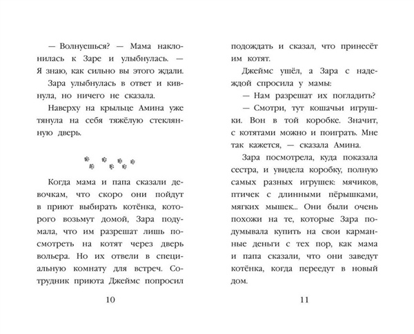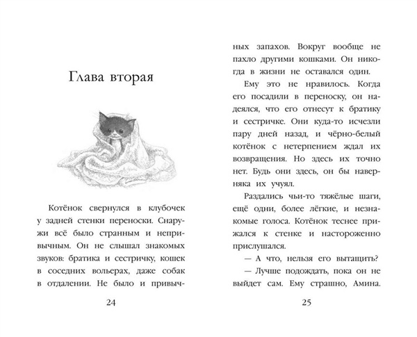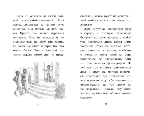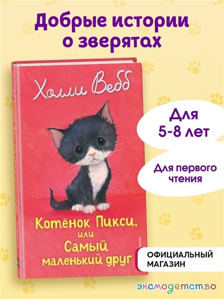 НОВИНКА ОТ ХОЛЛИ ВЕББ — АВТОРА СЕРИИ-БЕСТСЕЛЛЕРА «ДОБРЫЕ ИСТОРИИ О ЗВЕРЯТАХ»! Трогательная история о дружбе девочки и котёнка — для мальчиков и девочек 6—9 лет! Близняшки Зара и Амина переезжают в новый город и по-разному привыкают к переменам. Амина легко находит друзей, а Зара чувствует себя одинокой. Всё меняется, когда в семье появляется крошечный чёрно-белый котёнок Пикси, взятый из приюта. Именно он помогает робкой Заре стать увереннее и завести новых друзей. Но однажды во время ссоры девочек Пикси пропадает… Сумеют ли сёстры объединиться, чтобы вернуть своего маленького друга? Увлекательный рассказ о животных поможет ребёнку полюбить книги, научиться читать с удовольствием и навсегда запомнить первую любимую книжку про котёнка! Во всех книгах серии законченный сюжет, поэтому их можно читать в любом порядке. Книга с крупными буквами, на белой бумаге, внутри красивые чёрно-белые иллюстрации художницы Софи Вильямс, которые позволят детям переключать внимание, не нагружая глаза. Подходит для первого самостоятельного чтения. Холли Вебб — писательница, популярная во всём мире, но особенно её полюбили в России, что подтверждают многомиллионные тиражи. Читайте другие книги в серии «Добрые истории о зверятах. Мировой бестселлер», а также серии «Котята в музее» и «Мейзи Хитчинс. Приключения девочки-детектива»!
