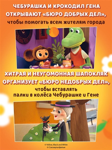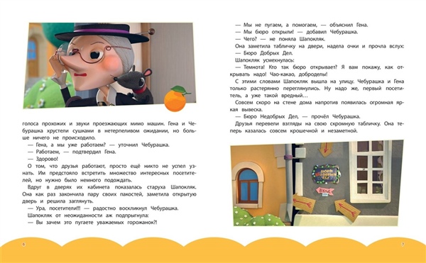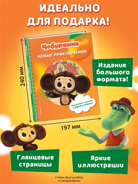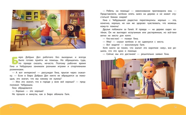 Мир милей от милоты и добрей от доброты! Новые приключения Чебурашки и его друзей теперь в книжном формате! Чебурашка и крокодил Гена решили, что доброты много не бывает, и открыли Бюро Добрых Дел! Но коварная Шапокляк не дремлет — она тут же основала свое Бюро Недобрых Дел. Что задумала хитрая старушка вместе с крыской Лариской? Читайте в новых приключениях! Эта книга — не просто чтение. Это возвращение в детство для взрослых и знакомство с легендой для малышей. Чебурашка учит доброте, дружбе и тому, что вместе можно преодолеть любые трудности. Издание прекрасно подойдет в качестве подарка детям 5—7 лет, ведь приятно дарить книгу большого формата с яркими кадрами из мультсериала на мелованной глянцевой бумаге.