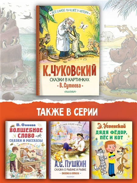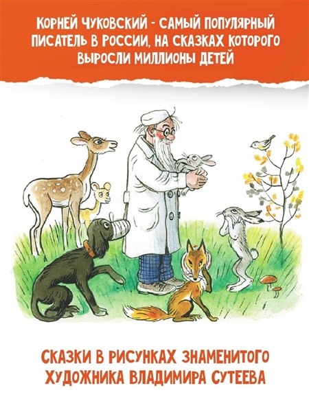 Корней Иванович Чуковский — один из самых знаменитых детских писателей. А началось всё в далёком 1916 году, когда Корней Чуковский сочинил первую сказку "Крокодил" для своего маленького сына. После появились другие знаменитые истории — "Мойдодыр", "Федорино горе", "Тараканище", "Айболит", "Телефон". Все эти сказки в рисунках знаменитого художника В. Сутеева вошли в нашу книгу. Для дошкольного возраста.