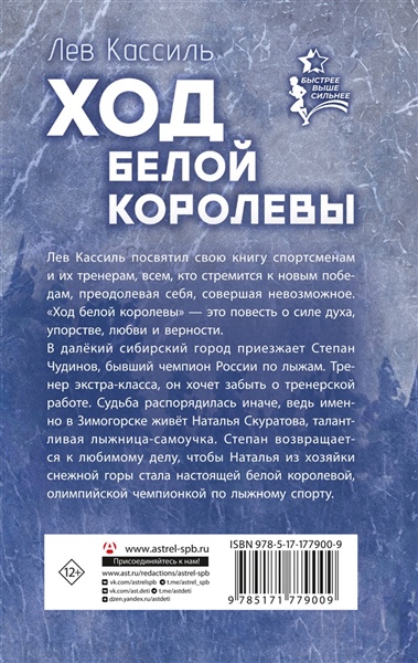 Лев Кассиль посвятил свою книгу спортсменам и их тренерам, всем, кто стремится к новым победам, преодолевая себя, совершая невозможное. "Ход белой королевы" — это повесть о силе духа, упорстве, любви и верности. В далёкий сибирский город приезжает Степан Чудинов, бывший чемпион России по лыжам. Тренер экстра-класса, он хочет забыть о тренерской работе. Судьба распорядилась иначе, ведь именно в Зимогорске живёт Наталья Скуратова, талантливая лыжница-самоучка. Степан возвращается к любимому делу, чтобы Наталья из хозяйки снежной горы стала настоящей белой королевой, олимпийской чемпионкой по лыжному спорту.