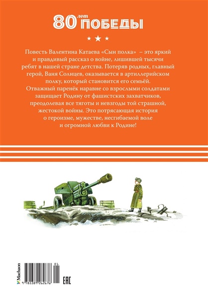 Повесть Валентина Катаева «Сын полка»– это яркий и правдивый рассказ о войне, лишившей тысячи ребят в нашей стране детства. Потеряв родных, главный герой, Ваня Солнцев, оказывается в артиллерийском полку, который становится его семьёй. Отважный паренёк наравне со взрослыми солдатами защищает Родину от фашистских захватчиков, преодолевая все тяготы и невзгоды той страшной, жестокой войны. Это потрясающая история о героизме, мужестве, несгибаемой воле и огромной любви к Родине!