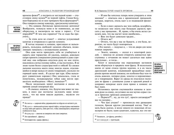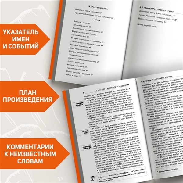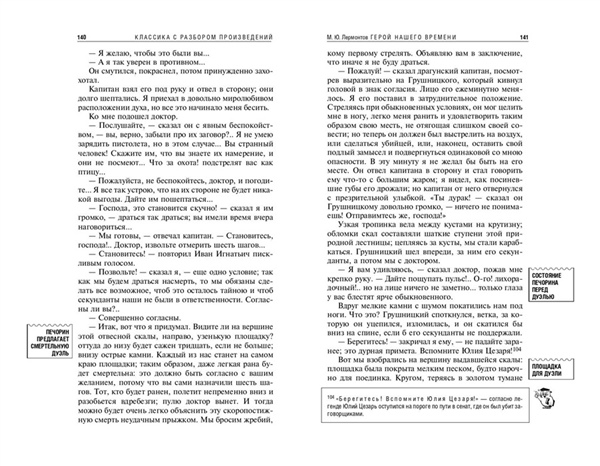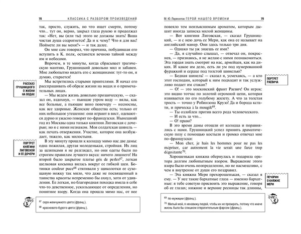 «Герой нашего времени» — первый в русской литературе социально-психологический роман, написанный в XIX веке выдающимся поэтом и прозаиком М. Ю. Лермонтовым. Эта гениальная книга до сих пор пользуется большой популярностью как среди школьников, так и среди представителей старшегопоколения. Новое издание романа в невероятном оформлении с голографической фольгой на обложке станет не только незаменимым помощником в подготовке к ЕГЭ, ОГЭ, урокам литературы, но и приятным подарком для всех ценителей классической литературы. В нем вы найдете уникальные справочные материалы: заметки на полях для быстрого поиска нужного фрагмента, развернутые комментарии, где объясняются устаревшие слова и непонятные факты, историю создания произведения, указатель имен и событий. Все это поможет не только быстро и легко подготовиться к экзаменам, но и узнать новые факты, которые можно было упустить в школе. В произведении рассказывается о жизни и приключениях русского офицера Григория Печорина, полного противоречий. Сложный характер, эгоистичность, скептическое и безучастное отношение к миру и обществу делают его «лишним человеком», символом своего времени. Нарушенная хронология позволяет постепенно добраться до глубин хаотичной души героя, который ставит перед собой важнейшие вопросы о цели и смысле человеческого бытия, о назначении человека в этом мире. Собрание всех книг серии «Классика с разбором произведений» в стильных обложках станет невероятным украшением домашней библиотеки. Ее яркое оформление можно будет заслуженно назвать жемчужиной вашей коллекции.