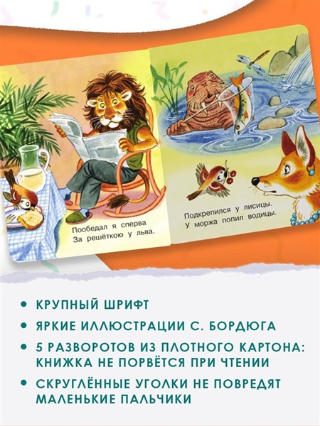 Эта книга предназначена именно для малышей: в ней яркие рисунки и крупные буквы, плотный картон не порвется при чтении, а скругленные уголки не повредят маленькие пальчики.