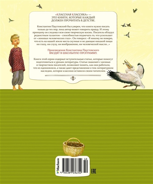 Константин Георгиевич Паустовский – классик отечественной литературы. Паустовский был уверен, что книги «следует писать только до тех пор, пока автор может говорить правду». И этому принципу он следовал всю свою творческую жизнь. Писатель обладал редкостным талантом – способностью подмечать то, что ускользает от «ленивых человеческих глаз». Почему еловые шишки весят гораздо больше сосновых? Почему человека, идущего по некошеному полю, может неотступно преследовать ласточка и кричать так, будто у неё отняли птенца? Он заражает читателя восхищением природой, раскрывает простые, казалось бы, истины. Но Паустовский писал не только о природе. Дети – вот чьим языком владел он в совершенстве и для кого сочинил – увлекательно и с юмором – немало своих замечательных произведений. В книгу, проиллюстрированную народным художником России, обладателем золотой медали Российской академии художеств Николаем Устиновым, вошли самые известные рассказы и сказки писателя.