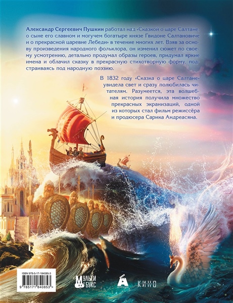 Александр Сергеевич Пушкин работал над "Сказкой о царе Салтане, о сыне его славном и могучем богатыре князе Гвидоне Салтановиче и о прекрасной царевне Лебеди" в течение многих лет. Взяв за основу произведения народного фольклора, он изменил сюжет по своему усмотрению, детально продумал образы героев, придумал яркие имена и облачил сказку в прекрасную стихотворную форму, подстраиваясь под народную поэзию. В 1832 году "Сказка о царе Салтане" увидела свет и сразу полюбилась читателям. Разумеется, эта волшебная история получила множество прекрасных экранизаций, одной из которых стал фильм режиссёра и продюсера Сарика Андреасяна.