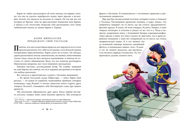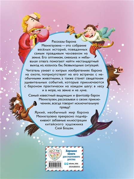 РАССКАЗЫ САМОГО ПРАВДИВОГО СКАЗОЧНИКА В БОЛЬШОМ, ПОДАРОЧНОМ ФОРМАТЕ! Твердый переплет с цветной фольгой, красочные иллюстрации на каждом развороте, плотная белая бумага и крупный шрифт. Познакомьтесь с бароном Мюнхгаузеном — самым невероятным рассказчиком в истории человечества! Кто еще так виртуозно владеет юмором, смекалкой и фантазией и способен на самые необыкновенные приключения: оседлать пушечное ядро, пройти битву на половине лошади, вытянуть себя из болота за свои же волосы?.. Барон Мюнхгаузен рассказывает так вдохновенно, что не поверить ему просто невозможно! Забавные иллюстрации, так точно дополняющие фантастические истории барона Мюнхгаузена, подготовил китайский художник Сюй Байшэн.