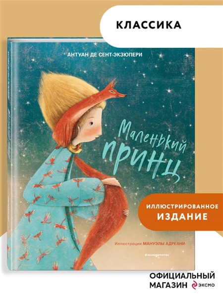 Покинув свой родной астероид Б-612, Маленький принц отправляется в путешествие, чтобы "найти занятие да поучиться чему-нибудь". Для современной итальянской художницы Мануэлы Адреани не важны конкретные детали его странствий и мест, куда попадает Маленький принц. Зато жители разных планет, с которыми встретится герой знаменитой истории Антуана де Сент-Экзюпери, удивительны. Они застыли в сложных ракурсах: вытягивают и заламывают руки, резко наклоняются, становятся на колени… Да и наряды их весьма необычны, сплошь покрыты орнаментом. Сам Маленький принц одет в свободный голубой комбинезон, украшенный красными стрекозами. Глядя на стрекозу, невольно задумываешься: жизнь так быстротечна, что не следует превращать её в унылую действительность. Маленький принц — странник, ищущий скрытый смысл вещей и человеческой жизни, — понимает эту истину как никто другой.