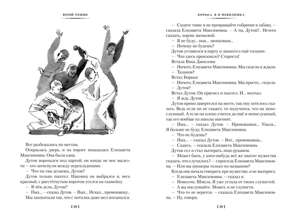 Как всё-таки интересно устроена жизнь. Ни один солдат не имеет столько командиров, сколько их у обыкновенного школьника. Дома распоряжаются родители. В школе — учителя. Правда, кое-что детям всё-таки разрешается. Разрешается быть вежливыми, послушными, тихими, скромными, прилежными — то есть на самом деле удобными и незаметными. Но герои историй Юрия Томина совершенно не такие. Остроумный фантазёр Костя Шмель из повести «Борька, я и невидимка» то и дело доводит учителей до нервного срыва. Впрочем, как говорит его папа, виной тому не сам Костя, а невидимка, который сидит внутри и толкает мальчика на дурные поступки. Трое друзей из «Нынче всё наоборот» — Славик, Юрка и Галка — бросают вызов родителям. Герои сибирских повестей и рассказов — Витька Мурашов и Юра Аленов — неутомимые мечтатели, душа которых жаждет настоящих приключений. Но открытия, которые им предстоит сделать, относятся не столько к географии, сколько к взрослению и поиску себя. Не менее интересные трансформации происходят и с героями рассказов автора. Повести Юрия Томина не раз становились основой для кинокартин (в 1982 году по мотивам повести «Нынче всё наоборот» вышел фильм «С кошки всё и началось…», снятый режиссёром Юрием Оксанченко) и неоднократно иллюстрировались. Истории в данном сборнике сопровождаются работами известных мастеров книжной графики из Санкт-Петербурга — Сергея Спицына и Леонтия Селизарова.