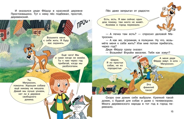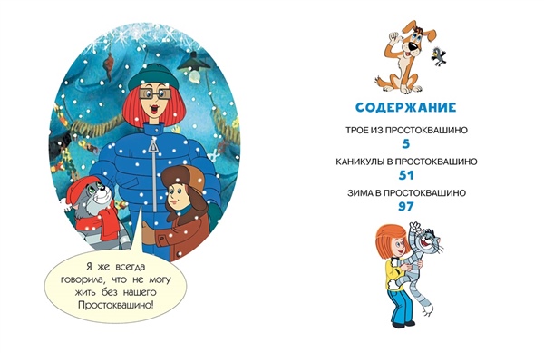 Дядя Фёдор, кот Матроскин, пёс Шарик и почтальон Печкин полюбились юным зрителям на экранах. Теперь любимых героев мультфильмов можно увидеть и в книжке. В сборник вошли все классические истории о простоквашинцах: "Трое из Простоквашино", "Каникулы в Простоквашино" и "Зима в Простоквашино". В книге рисунки из мультфильмов. Для детей до 3-х лет.