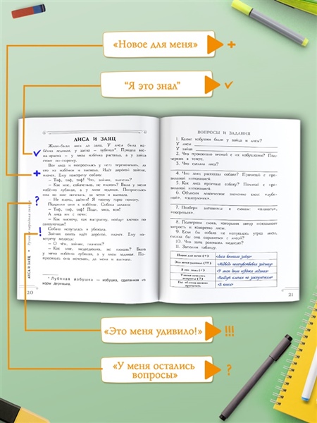 Для эффективного обучения ребёнка работе с текстом в пособии предлагается метод (INSERT) – приём маркировки текста условными значками.