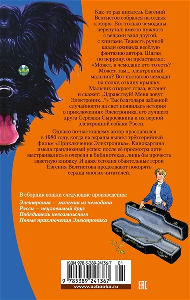 Кто не знает Электроника и его лучшего друга Серёжку Сыроежкина? И наверное, многие знакомы с Рэсси — Редчайшей Электронной Собакой. А ведь всё началось с того, что профессор Громов изобрёл электронного мальчика, который совершенно случайно повстречался со своим живым двойником. И с тех пор Электроник и Сыроежкин стали неразлучными друзьями. Каких только удивительных приключений с ними не случалось! Друзья участвовали в спасении синего кита Нектона и белого тигра, вдохновили одноклассников Серёжки стать «обыкновенными гениями», разработали проект «Космический корабль „Земля“». А чего стоила одна операция по спасению Рэсси из рук коварных злодеев! Об этих и других захватывающих историях про Электроника, Серёжку Сыроежкина и их друзей рассказывается в четырёх фантастических повестях, которые вошли в книгу.