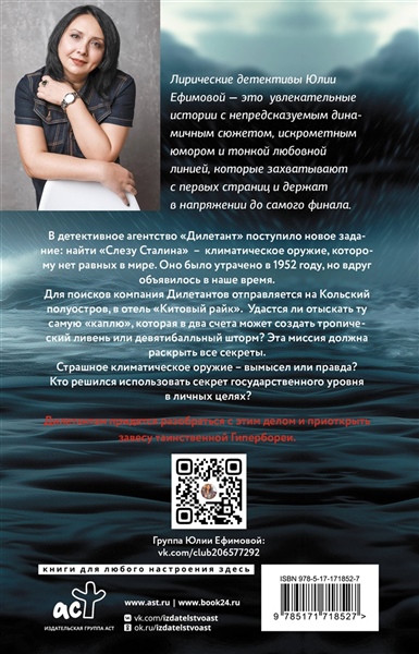 В детективное агентство "Дилетант" поступило новое задание: найти "Слезу Сталина" – климатическое оружие, которому нет равных в мире. Оно было утрачено в 1952 году, но вдруг объявилось в наше время. Для поисков компания Дилетантов отправляется на Кольский полуостров, в отель "Китовый райк". Удастся ли отыскать ту самую "каплю", которая в два счета может создать тропический ливень или девятибалльный шторм? Эта миссия должна раскрыть все секреты.