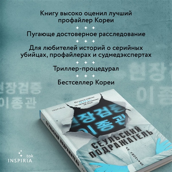 НОВЫЙ КОРЕЙСКИЙ ФЕНОМЕН, ПОКОРИВШИЙ АЗИЮ И ЕВРОПУ. СУДЕБНО-МЕДИЦИНСКИЙ ТРИЛЛЕР, ПУГАЮЩИЙ СВОЕЙ ДОСТОВЕРНОСТЬЮ. Инспектор Ли Суин — единственный, кто знает личность серийного убийцы. К несчастью, он не помнит даже собственного имени… В Сеуле орудует серийный убийца. Он убивает тех, кто избежал наказания из-за отсутствия улик. И убивает их теми же способами, которыми они расправлялись со своими жертвами. За это он получил прозвище ПОДРАЖАТЕЛЬ. Инспектор ЛИ СУИН преследовал Подражателя и подобрался к нему очень близко. Но потерял память и полностью ослеп в результате пожара. ХАН ЧЖИСУ — детектив-профайлер. В отношении нее ведется проверка по факту возможного доведения до самоубийства подозреваемого, которого она допрашивала несколько месяцев назад. Девушка уверена: его убил Подражатель, и только Ли Суин может это доказать. Но сперва она должна помочь инспектору вернуть его память… «”Сеульский Подражатель” — это триллер, написанный автором, знакомым с областью научных исследований. Ли Чжонгван достоверно воссоздает в романе действительность: от выхода на место преступления до сбора улик и их анализа. То, как он анализирует и реконструирует места преступлений, напоминает мне моего коллегу. В области научных исследований опубликован настоящий триллер, что редко встречается среди корейских романов». — Пак Кивон (Директор отдела судебной химии, Национальный институт судебной экспертизы) «Этот роман содержит много материалов, связанных с судебной медициной. Каждая деталь настолько продумана и подробна, что заставляет задуматься, что это реальный опыт писателя, а не то, что он мог прочитать в книге. Кажется, именно это чувство реальности позволяет глубже погрузиться в роман. Это редкий шедевр в Корее, читая который кажется, что вы читаете качественный англоязычный остросюжетный роман». — Гвон Ильён (первый профессор-профайлер в Корее)