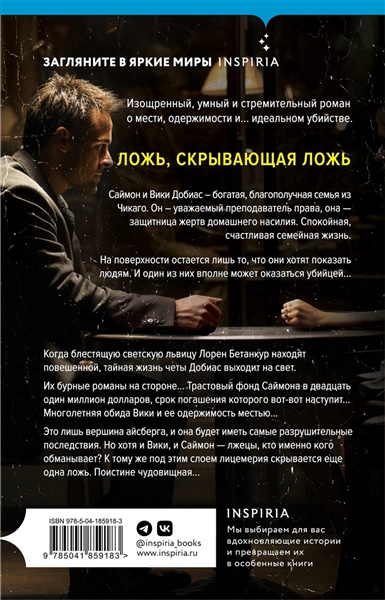 Изощренный, умный и стремительный роман о мести, одержимости и… идеальном убийстве. От автора бестселлеров New York Times. Смесь «Исчезнувшей» и «Незнакомцев в поезде».ЛОЖЬ, СКРЫВАЮЩАЯ ЛОЖЬСаймон и Вики Добиас — богатая, благополучная семья из Чикаго. Он — уважаемый преподаватель права, она — защитница жертв домашнего насилия. Спокойная, счастливая семейная жизнь. Но на самом деле все абсолютно не так, как кажется. На поверхности остается лишь то, что они хотят показать людям. И один из них вполне может оказаться убийцей…Когда блестящую светскую львицу Лорен Бетанкур находят повешенной, тайная жизнь четы Добиас выходит на свет. Их бурные романы на стороне… Трастовый фонд Саймона в двадцать один миллион долларов, срок погашения которого вот-вот наступит… Многолетняя обида Вики и ее одержимость местью… Это лишь вершина айсберга, и она будет иметь самые разрушительные последствия. Но хотя и Вики, и Саймон — лжецы, кто именно кого обманывает? К тому же, под этим слоем лицемерия скрывается еще одна ложь. Поистине чудовищная…_____________________________________________________________«Самое интересное заключается в том, чтобы выяснить, каким частям истории — если таковые имеются — следует доверять. Эллис жонглирует огромным количеством сюжетных нитей, и результат получается безумно интересным. Помогает и то, что почти каждый персонаж в книге по определению ненадежен». — New York Times«Тревожный, сексуальный, влекущий, извилистый и извращенный роман». — Джеймс Паттерсон«Впечатляет!» — Chicago Tribune«Здешние откровения удивят даже самых умных читателей. Сложная история о коварной мести, которая обязательно завоюет поклонников». — Publishers Weekly«Совершенно ослепительно! Хитроумный триллер с дьявольским сюжетом. Глубоко проникновенное исследование жадности, одержимости, мести и справедливости. Захватывающе и неотразимо!» — Хэнк Филлиппи Райан, автор бестселлера «Ее идеальная жизнь»«Головокружительно умный триллер. Бесконечно удивительно и очень весело». — Лайза Скоттолайн«Напряженный, хитрый триллер, который удивляет именно тогда, когда кажется, что вы во всем разобрались». — Р. Л. Стайн