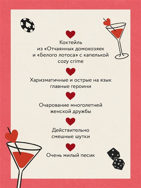 «Идеальный коктейль: остроумие, доброта и размах настоящего приключения. Полный набор удовольствия для тех, кто любит умные детективные комедии». — НИНА САЙМОН, автор Mother-Daughter Murder Night