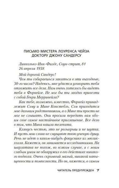 Роман «Читатель предупрежден» продолжает серию о расследованиях Генри Мерривейла, эксцентричного толстяка, который был признан одним из самых неординарных сыщиков в детективной литературе. Хозяин загородного дома в Суррее умирает на глазах у гостей по неизвестной причине, и медицина бессильна дать этому объяснение. Дело осложняется тем, что его смерть была предсказана одним из гостей, загадочным «телепатом», который уверяет, что совершить убийство можно с помощью мысли.