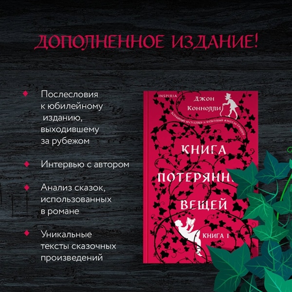 И пока в Европе бушует Вторая мировая война, Дэвид переносится в страну, оказавшуюся странным, пугающе реальным отражением нашего мира. Страну, сплетенную из мифов и историй, населенную волками, похожими на людей, и людьми, которые хуже волков. Страну, где правит увядший король, хранящий свои секреты в легендарной «Книге потерянных вещей»…