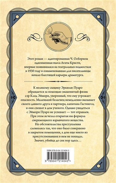 К великому сыщику Эркюлю Пуаро обращается за помощью знаменитый физик сэр Клод Эймори, уверенный, что ему угрожает опасность. Маленький бельгиец немедленно вызывает своего давнего друга и партнера, капитана Гастингса, и они спешат в дом ученого. Однако увидеться с Эймори Пуаро не успевает – тот отравлен. При этом исчезла открытая им формула сверхмощного взрывчатого вещества. Но обстоятельства преступления сложились так, что оно было совершено в закрытом помещении, а дом еще никто из присутствовавших в нем не покидал. Значит, убийца до сих пор здесь…