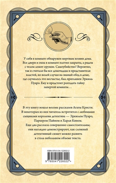 В эту книгу вошло восемь рассказов Агаты Кристи. В некоторых из них читатель встретится с любимыми сыщиками королевы детектива — Эркюлем Пуаро, Паркером Пайном и Харли Кином. Еще два рассказа совершенно самостоятельны; они наглядно демонстрируют, как сложный детективный сюжет можно развить в столь небольшом объеме текста.
