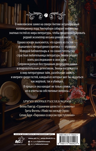В живописном замке на севере Англии эксцентричный коллекционер лорд Уинтерборн собирает множество знатных гостей из мира литературы, чтобы продемонстрировать редкий экземпляр весьма ценной книги. Однако вскоре выясняется, что одного из гостей — уважаемого литературного критика — отравили при помощи той самой книги. Молодая библиотекарь и страстная любительница литературы Эмили решает взять расследование в свои руки. Сопровождаемая бесстрашным дворецким замка и очаровательным детективом, Эмили погружается в мир литературных тайн, разоблачая зависть и интриги среди гостей, каждый из которых мог бы оказаться как жертвой, так и убийцей. В процессе она находит не только улики, но и ответы на собственные вопросы.