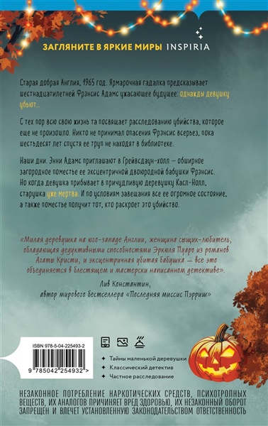 «Причудливая деревушка на юго-западе Англии, женщина сыщик-любитель, обладающая дедуктивным способностями Эркюля Пуаро из романов Агаты Кристи, и эксцентричная убитая тетушка — все это объединяется в блестящем и мастерски написанном детективе. Для всех любителей загадочных убийств — это для вас! Не пропустите». — Лив Константин, автор мирового бестселлера «Последняя миссис Пэрриш»
