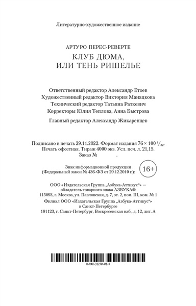 Варо Борха, обладатель крупнейшей в Испании коллекции книжных редкостей, нанимает Лукаса Корсо, опытного букиниста и охотника за уникальными книгами, чтобы установить подлинность приобретенного им экземпляра книги, некогда преданной огню инквизицией вместе с ее издателем и сохранившейся лишь в трех экземплярах. Заодно с этим Корсо предстоит проверить на подлинность рукопись одной из глав «Трех мушкетеров». Задача поставлена непростая. Осложняется она тем, что в ходе ее выполнения смерть преследует Лукаса по пятам, но до времени уносит с собой лишь тех, с кем он имеет дело. Что это? Случайное совпадение? Или демоны из книги о том, как из мрака вызывать Люцифера, действительно выходят из адских врат? По мотивам романа был снят знаменитый фильм Романа Полански «Девятые врата» (1999), главную роль в котором исполнил Джонни Депп.