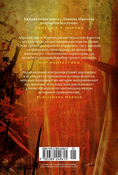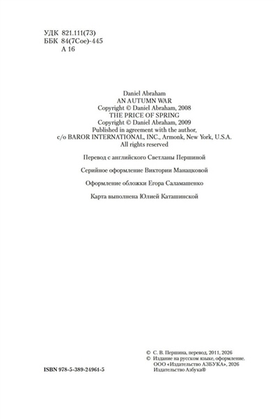 Третий и четвертый романы тетралогии об уникальном фэнтезийном мире, чье выживание зависит от магии, а магия самым невероятным образом связана с поэзией. От соавтора эпической космооперы «Пространство» и участника межавторского проекта «Игра престолов». Война среди осени Ота Мати, правитель города-государства Мати, потратил годы, пытаясь подготовить свой народ к радикальной перемене в судьбе. Он понимал, что андаты, эти сверхъестественные существа, обеспечивающие людям процветание и защиту, рано или поздно прекратят свое служение и больше не дадут себя подчинить. Но его усилий оказалось недостаточно, к тому же они запоздали. За морем, во враждебном Гальте, обрел власть и силу бесстрашный и безжалостный полководец, нашедший способ совершить немыслимое — изгнать андатов из мира. Расплата за весну Прошло пятнадцать лет после опустошительной войны, которая погубила поэтов и заставила исчезнуть их могущественных рабов — андатов. Император Хайема пытается закрепить чудом достигнутый мир брачным союзом между своим сыном и дочерью высокопоставленного гальта. Но Маати, уцелевший поэт, в изгнании не смирился с итогом войны и, презрев традиции, решил обучить новых поэтов. Его цель — любой ценой сотворить андата и восстановить мир, каким тот был до катастрофы. Заключительный роман тетралогии — впервые на русском!