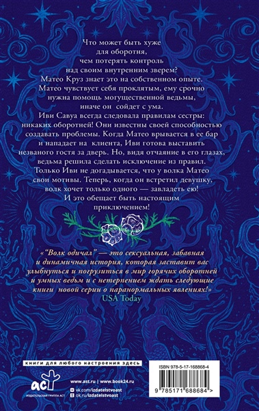 Что может быть хуже для оборотня, чем потерять контроль над своим внутренним зверем? Матео Круз знает это на собственном опыте. Матео считает себя проклятым, ему срочно нужна помощь могущественной ведьмы, иначе он сойдет с ума. Иви Савуа всегда следовала правилам сестры: никаких оборотней! Они известны своей способностью создавать проблемы. Когда Матео нападает на клиента в ее баре, Иви готова выставить незваного гостя за дверь. Но увидев отчаяние в его глазах, ведьма решает сделать исключение из правил. Только Иви не догадывается, что у волка Матео свои мотивы. Теперь, когда он встретил девушку, волк хочет только одного – завладеть ею! И это обещает быть настоящим приключением!