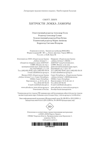 Однажды Воровской наставник явился к отцу Цеппи, Безглазому священнику храма Переландро, чтобы сбыть с рук несносного мальчишку Локка Ламору. Ведь Ламора, хоть и прирожденный вор, был воистину несносен, и для его исключительных талантов город-государство Каморр - прорезанное десятками каналов, раскинувшееся на множестве островов под сенью исполинских башен из стекла Древних - могло оказаться тесным. С течением лет Локку и его Благородным Канальям сходит с рук многое вплоть до нарушения Тайного уговора, регулирующего всю жизнь Путных людей Каморра, но вот в закулисье преступного сообщества появляется Серый король - безжалостный, невидимый и неуязвимый убийца, - внося свои коррективы в очередную гениальную аферу Локка… В новом переводе - один из самых ярких фэнтези-дебютов последних лет.