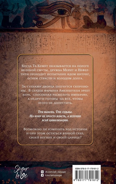 Когда Та-Кемет оказывается на пороге великой смуты, дружба Мерит и Нефертити проходит испытание ядом интриг, огнем страсти и холодом долга. За стенами дворца шепчутся скорпионы. В сердце фараона Аменхотепа зреет вера, способная расколоть империю,а недруги готовы на все, чтобы этого не допустить. Три выбора. Три судьбы.На кону не просто власть, а будущее всей цивилизации. Возможно ли изменить ход истории и при этом остаться верной себе, своей богине и своей царице?