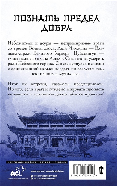 Небожители и асуры — непримиримые враги со времён Войны хаоса. Люй Инчжэнь — Владыка-страж Великого барьера. Цуймингуй — глава падшего клана Асюло. Она готова умереть ради Небесного города. Он же вернулся к жизни с единственной целью: воздать по заслугам тем, кто пленил и мучил его. Итог их встречи, казалось, предопределен. Но что, если врагам суждено миновать пропасть ненависти и вспомнить давно забытое прошлое?