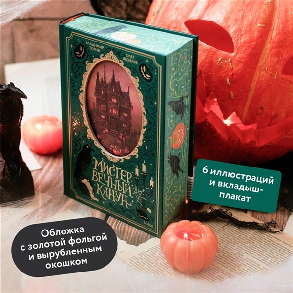Подарочное издание романа «Мистер Вечный Канун» — два тома под одной обложкой Эксклюзивный материал: первая глава следующей части — «Мистер Декабрь» Обложка с золотой фольгой и вырубленным окошком, 6 иллюстраций внутри, вкладыш-плакат