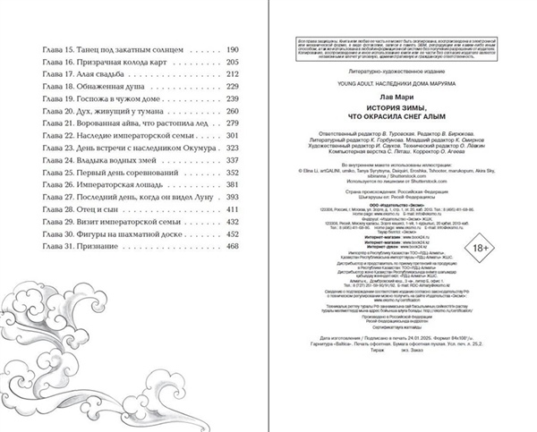 Первая книга дилогии «Наследники дома Маруяма» для всех поклонников азиатского фэнтези в духе «Серебряного змея в корнях сосны» и аниме «Монолог фармацевта». Под обложкой вас ждет уникальный мир с азиатским колоритом, демоны, несколько любовных линий и проклятие, ставшее спасением. В один из холодных зимних дней обитатели поместья Маруяма встрепенулись от прекрасной новости: у главы семейства родился наследник. Только радость продлилась недолго, а проклятие расколотой души явило на свет двух одинаковых младенцев. Жизнь Акио казалась счастливой: он обрел верного друга и сумел отыскать девушку, которую полюбил всем сердцем. Вот только день свадьбы обернулся кошмаром для его семьи и всей империи. Реки пролитой крови, оковы на шее брата и собственная смерть — вот что ждало юношу тем злополучным днем. Он надеялся навсегда остаться в аду среди таких же искалеченных душ, но судьба распорядилась иначе и заставила его узреть цену своих ошибок. Сможет ли Акио не изменить себе и все исправить, пока верховные демоны строят свои козни?