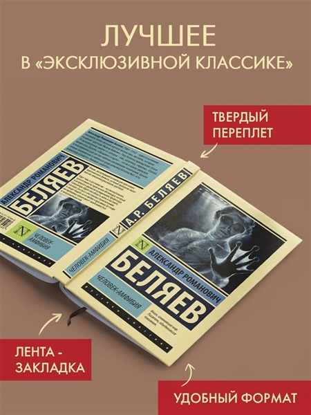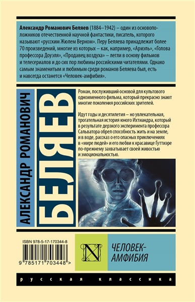 Роман, послуживший основой для культового одноименного фильма, который прекрасно знают многие поколения российских зрителей. Идут годы и десятилетия – но увлекательная, трогательная история юного Ихтиандра, который в результате дерзкого эксперимента профессора Сальватора обрел способность жить и на земле, и в воде, рассказ о его опасных приключениях в "мире людей" и его любви к красавице Гуттиэре по-прежнему захватывает своей живостью и эмоциональностью.