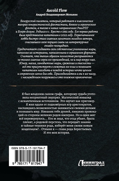 "Я был младшим сыном графа, которому судьба уготовила неприятный сюрприз. Магический инвалид с искалеченным источником. Это звучит как приговор. Я жил вдали от подковёрных игр аристократов, наслаждаясь