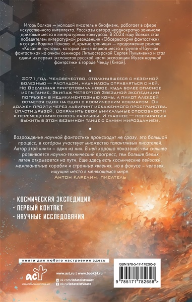 2071 год. Человечество, столкнувшееся с неземной болезнью — распадом, научилось справляться с ней. Но Вселенная приготовила новое, куда более опасное испытание. Экипаж Четвёртой Звёздной экспедиции погружён в медикаментозную кому, а пилот Алексей остается один на один с космическим кошмаром. Он должен пройти через лабиринт искажённого пространства. Спасти друзей. Сохранить свои уникальные способности к перемещениям сквозь разрывы. И главное — выжить в этом безумном танце с самим мирозданием.