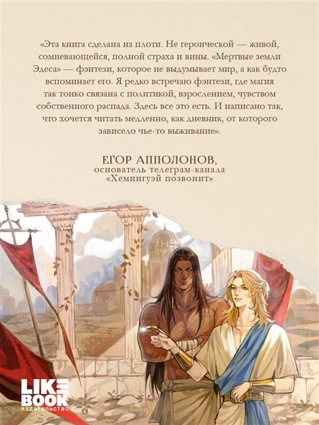 «Эта книга сделана из плоти. Не героической — живой, сомневающейся, полной страха и вины. "Мертвые земли Эдеса" — фэнтези, которое не выдумывает мир, а как будто вспоминает его. Словно автор где-то был, что-то видел, а потом пытался забыть, но не смог. И вот теперь мы вместе с ним идем по этим землям — в империи, где печать «весит» больше судьбы, а жизнь — не стоит ничего. Я редко встречаю фэнтези, где магия так тонко связана с политикой, взрослением,чувством собственного распада. Здесь все это есть. И написано так, что хочется читать медленно, как дневник, от которого зависело чье-то выживание.