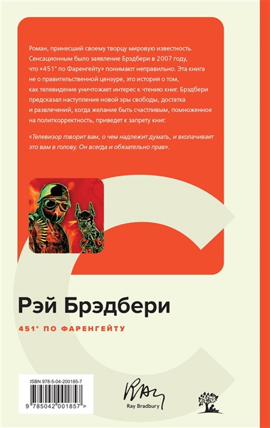В начале 1950-х большинство американцев в глаза не видело телевизора, однако Брэдбери предсказал наступление новой эры свободы, достатка и развлечений, когда желание быть счастливым, помноженное на политкорректность, приведет к запрету книг.