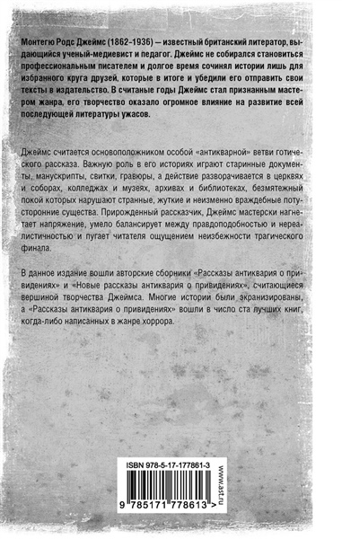 В данное издание вошли авторские сборники "Рассказы антиквария о привидениях" и "Новые рассказы антиквария о привидениях", считающиеся вершиной творчества Джеймса. Многие истории были экранизированы, а "Рассказы антиквария о привидениях" вошли в число ста лучших книг, когда-либо написанных в жанре хоррора.