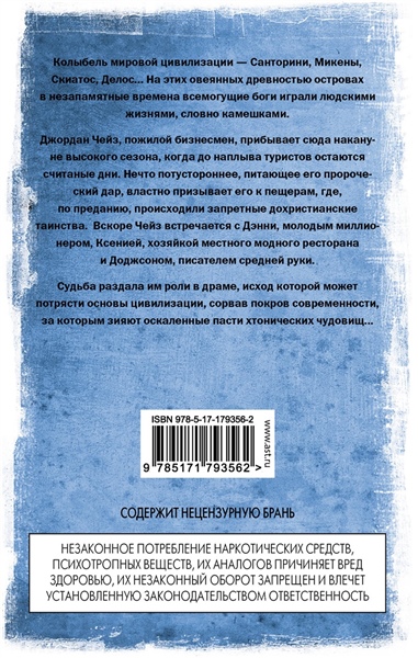 Джордан Чейз, пожилой бизнесмен, прибывает сюда накануне высокого сезона, когда до наплыва туристов остаются считаные дни. Нечто потустороннее, питающее его пророческий дар, властно призывает его к пещерам, где, по преданию, происходили запретные дохристианские таинства.Вскоре Чейз встречается с Дэнни, молодым миллионером, Ксенией, хозяйкой местного модного ресторана и Доджсоном, писателем средней руки.