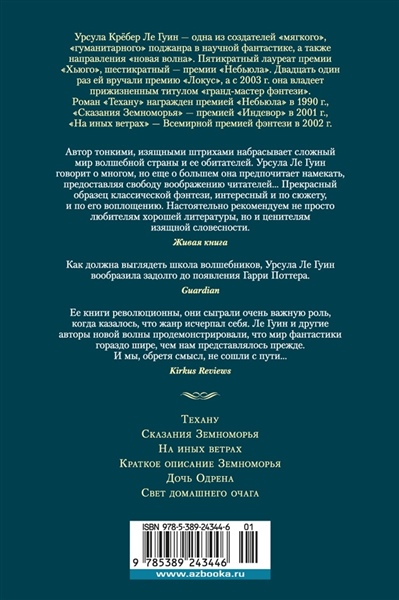 Полюбившийся миллионам читателей цикл «Земноморье» — это грандиозная вселенная, где магия так же естественна и обыденна, как в нашем мире физические явления. По островам огромного океана, населенным людьми и драконами, щедрым на приключения и испытания, хранящим великое множество заветных тайн, странствуют удивительные герои, и нити их судеб сплетаются в роскошное полотно, имя которому — эпическая фэнтези. «Земноморье» принесло его автору мировую славу, и сейчас оно стоит в одном ряду с такими шедеврами фэнтези, как «Властелин Колец» Дж. Р. Р. Толкина и «Нарния» К. С. Льюиса. В сборник вошли заключительные произведения цикла.