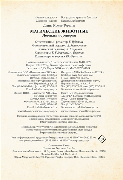Представьте себе: ночное небо озаряет огненное дыхание дракона, в лесу эхом разносится уханье совы, а мимо вашего окна бесшумно скользит черный кот... Что объединяет всех этих животных? Они всегда сопровождали человечество как обладатели потусторонней силы, помощники магов, герои легенд и мифов. Внутри этого старинного сборника вы найдете уникальные иллюстрации и фантастические истории множества удивительных зверей, каждое из которых прольет свет на тайны и колдовские ритуалы мрачного Средневековья... Вам предстоит отправиться в захватывающее путешествие, полное леденящих душу открытий, и познать мистическую силу легендарных созданий.