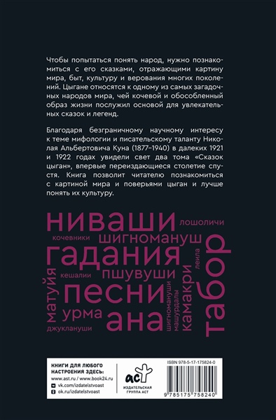Чтобы попытаться понять народ, нужно познакомиться с его сказками, отражающими картину мира, быт, культуру и верования многих поколений. Цыгане относятся к одному из самых загадочных народов мира, чей кочевой и обособленный образ жизни послужил основой для увлекательных сказок и легенд. Благодаря безграничному научному интересу к теме мифологии и писательскому таланту Николая Альбертовича Куна (1877–1940) в далеких 1921 и 1922 годах увидели свет два тома "Сказок цыган", впервые переиздающиеся столетие спустя. Книга позволит читателю познакомиться с картиной мира и поверьями цыган и лучше понять их культуру. Об авторе Николай Альбертович Кун (21 мая 1877, Москва — 28 октября 1940 или 28 февраля 1940, Черкизово, Московская область) — русский историк, писатель и педагог, профессор Московского государственного университета. Самая известная книга автора, написанная в 1914 году, — "Что рассказывали древние греки и римляне о своих богах и героях". В ней Николай Альбертович второй в мире и первый в России излагает множество мифов Древней Греции в доступной и увлекательной форме. После 1940 года книга неоднократно переиздавалась под названием "Легенды и мифы Древней Греции", была переведена на основные европейские языки и языки народов бывшего СССР.