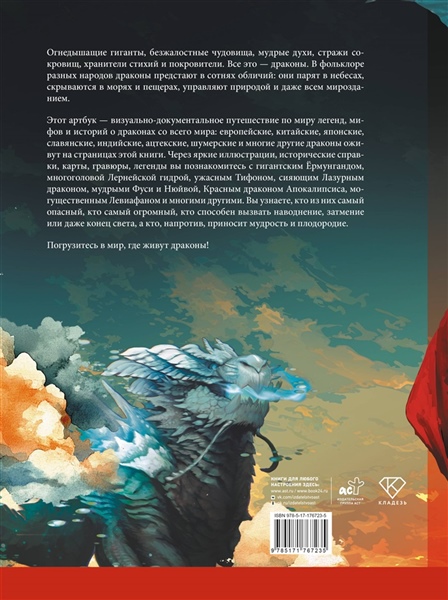 В этом артбуке собраны иллюстрации 73 драконов со всего мира и истории о них: характеристики, упоминания в мифах и легендах, интересные факты. Описания драконов сопровождают яркие иллюстрации современных японских художников, а также гравюры, карты и исторические документы. Европейские, китайские, японские, славянские, индийские, ацтекские, шумерские и многие другие драконы оживут на страницах этой книги. Вы узнаете много интересного о Ёрмунганде, Лернейской гидре, Тифоне, Лазурном драконе, Фуси и Нюйве, Красном драконе Апокалипсиса, Левиафане и многих других чудовищах.